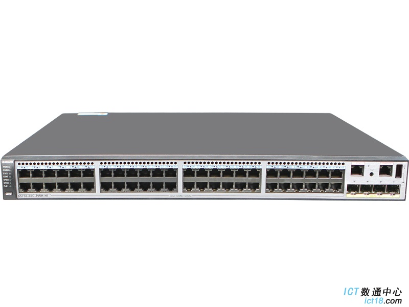 ,S5730-60C-HI (48个10 100 1000Base-T以太网端口,4个万兆SFP+,单子卡槽位,不含电源)