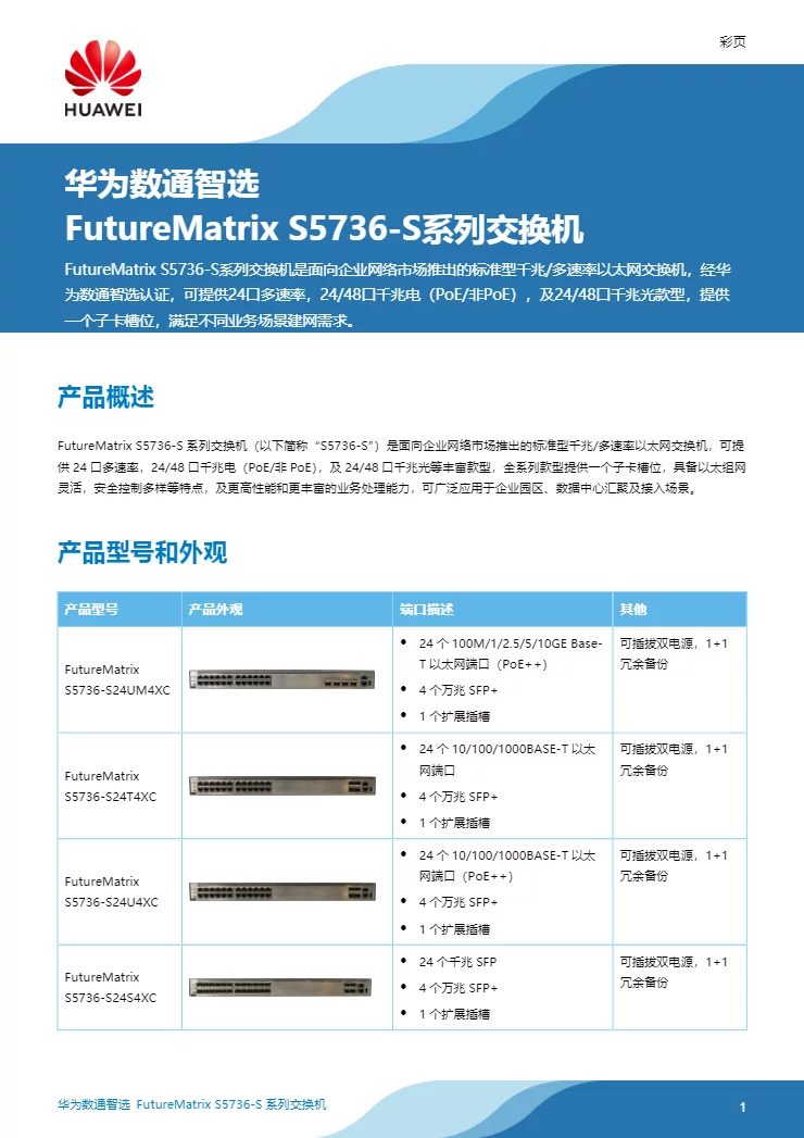 华为CloudEngine S5736-S48U4XC 华为CloudEngine S5736-S48U4XC交换机 (48个10/100/1000BASE-T以太网端口,4个万兆SFP+,单子卡槽位,PoE++)