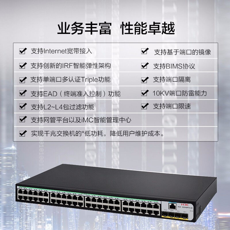 4. 智能管理:支持SNMP、CLI等多种管理方式,便于企业进行网络监控和管理。