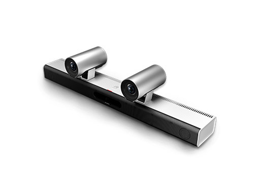 Bar 500 是华为新一代智能导播视频会议终端,内置全景摄像机和双路跟踪摄像机可实现会议焦点区域和发言人特写跟踪,内置麦克风和