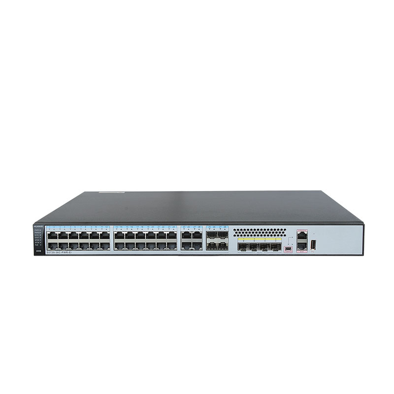 华为交换机S5720-36C-PWR-EI-AC:24个PoE+10/100/1000BASE-T以太网电接口,4个Combo接口(10/100/1000BASE-T+100/1000BASE-X),4个10GE SFP+以太网光接口 。