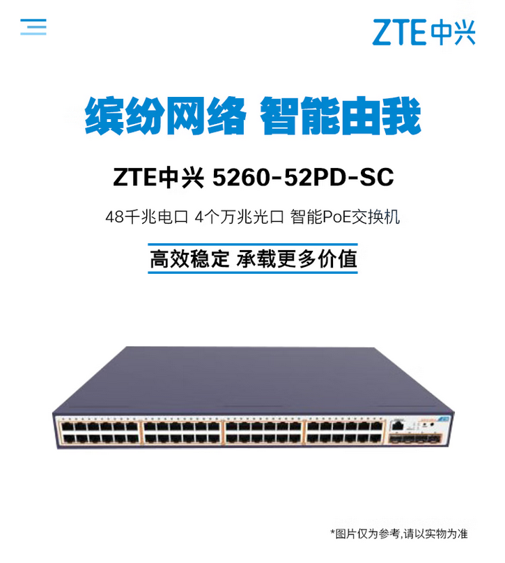 ZXR10 5260-52PD-SC 48*10/100/1000Base-T RJ45(PoE/PoE+)端口 + 4*10GE SFP+端口